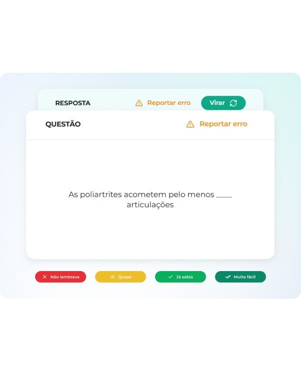 Com ajuda da inteligência artificial, os flashcards são direcionados para você de acordo com a sua porcentagem de acerto e relevância dos assuntos para as instituições que você vai prestar.